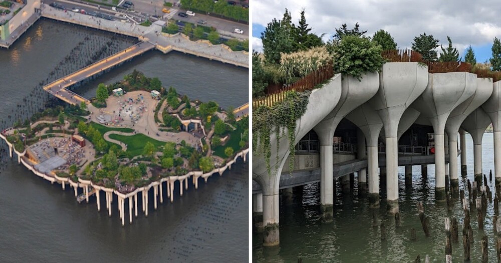 Самый необычный урбанистический парк, который держится над Гудзоном на 280 железобетонных сваях. Дизайнер Томас Хезервик спланировал его так, чтобы даже с пешеходных дорожек открывалась потрясающая панорама Манхэттена и реки. Парк украшен разнообразными и уникальными видами растений, смотровыми площадками и дорожками, но главное место занимает небольшой амфитеатр, в котором проходят концерты и выставки.