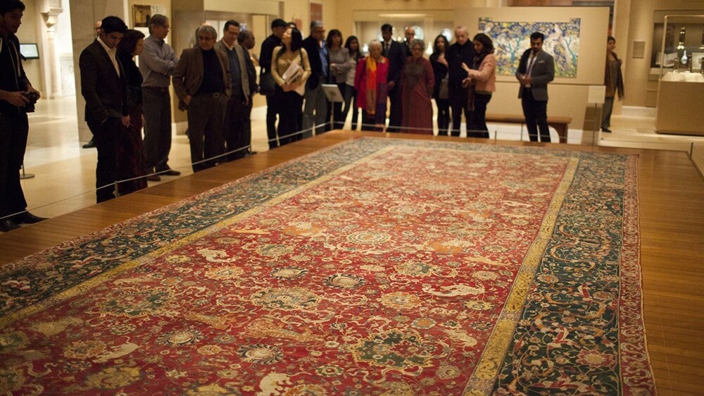 Считается, что это изделие было соткано в Кирмане в 17 веке. Его характерная элегантность сохранила изысканное качество, несмотря на возраст. Ковёр, украшенный вьющимися лозами и яркими цветами, долгие годы хранился в художественной галерее Коркоран.