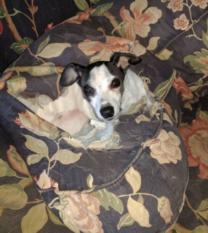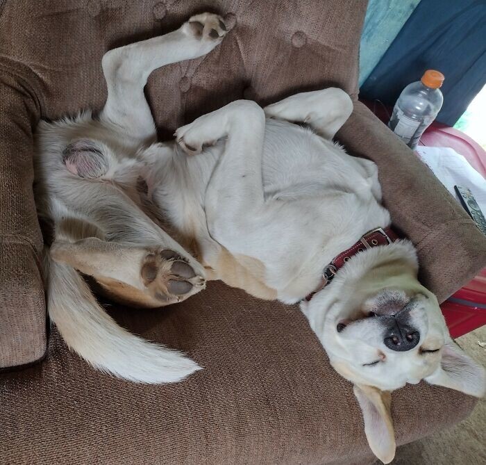 26. "Не понимаю, как наша собака может спать одной половиной тела на кресле"