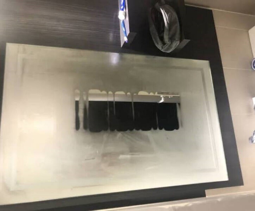 10. Зеркала в одном из отелей Эдинбурга с частью, которая не запотевает