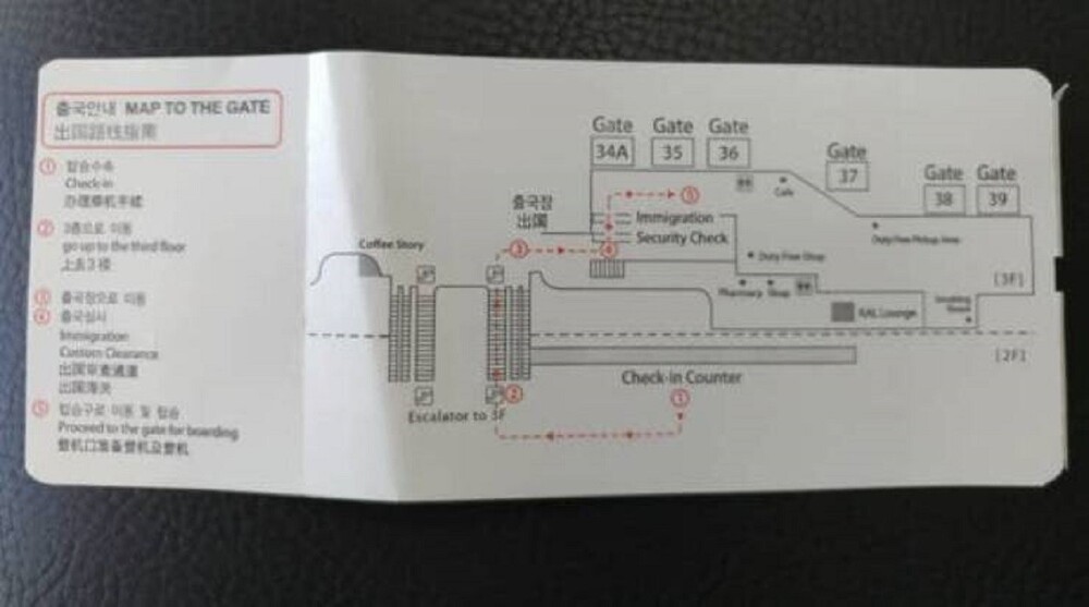 17. На обороте авиабилетов в Сеуле есть схема аэропорта с указанием вашего выхода на посадку