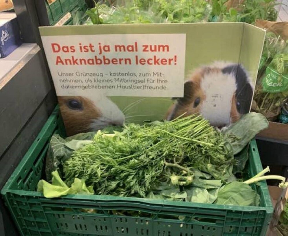 23. В швейцарском магазине выкладывают слегка увядшую зелень - её можно бесплатно забрать, если у вас есть грызун