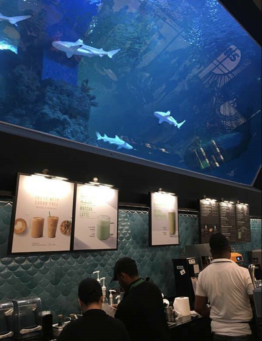3. Кофейня в Омане, а над ней - аквариум с акулами