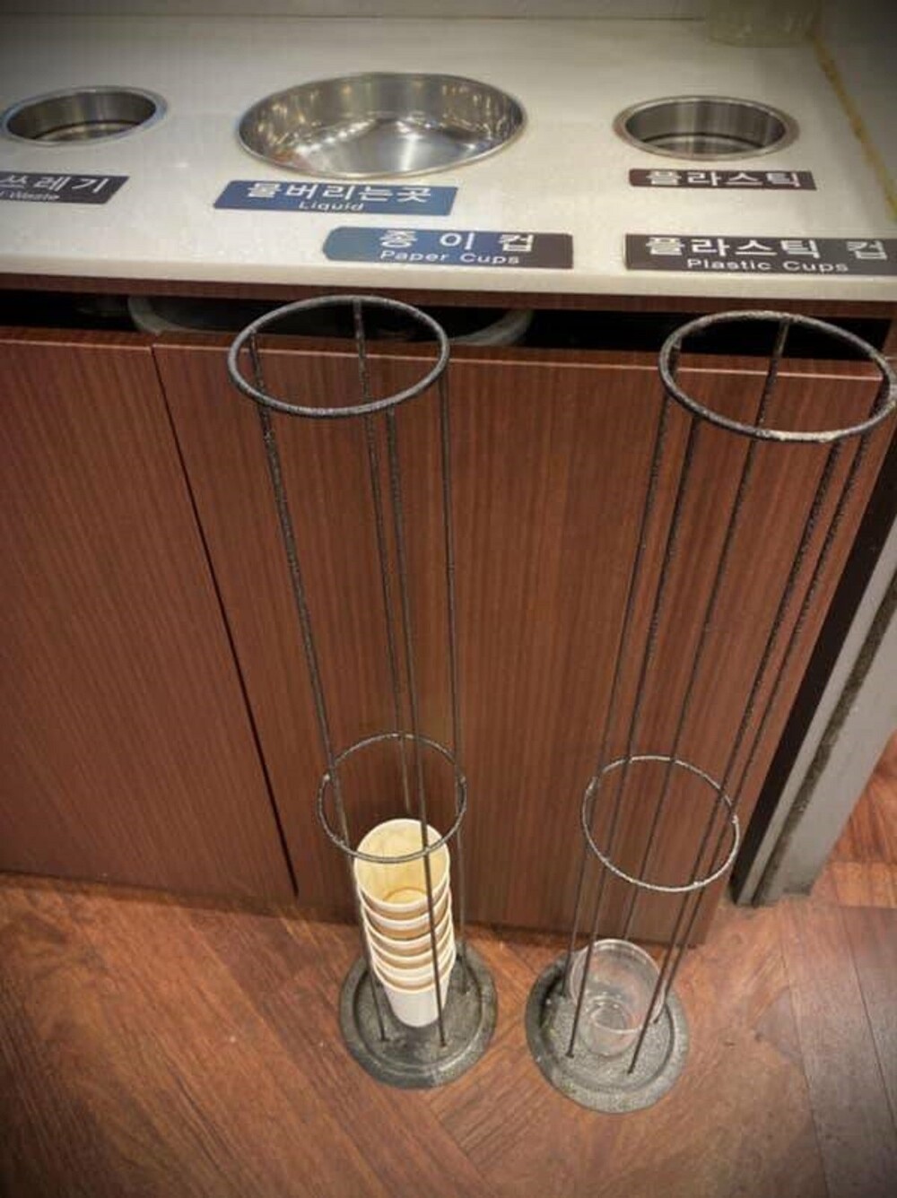 32. Стойки в корейской кофейне, где можно оставить использованные стаканчики из-под кофе. Затем они идут на переработку