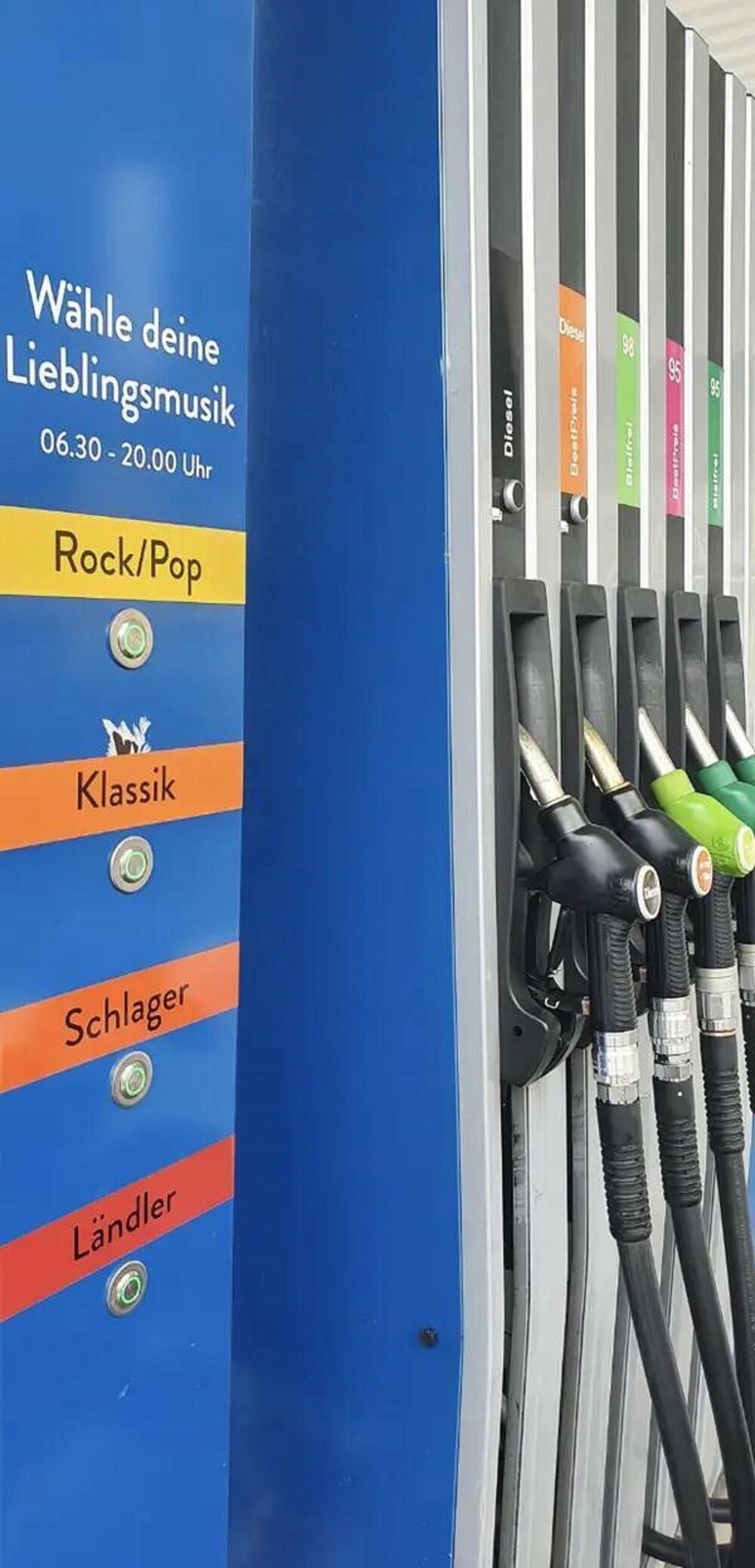 24. Заправка в Швейцарии. Пока заполняется бак, можно послушать музыку - а ещё и выбрать ваш любимый жанр