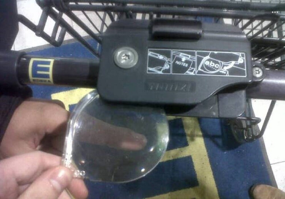 22. В сети супермаркетов в Германии к тележкам прикреплены лупы, чтобы плохо видящим было удобнее читать