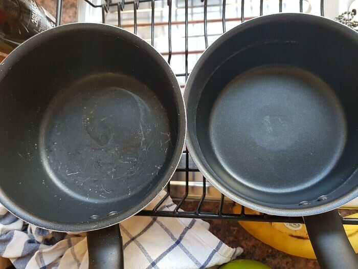 8. «Просила бывших соседей по квартире не ковырять в моем ковшике с антипригарным покрытием ничем металлическим, мне сказали, что я слишком загоняюсь и они её не поцарапают»