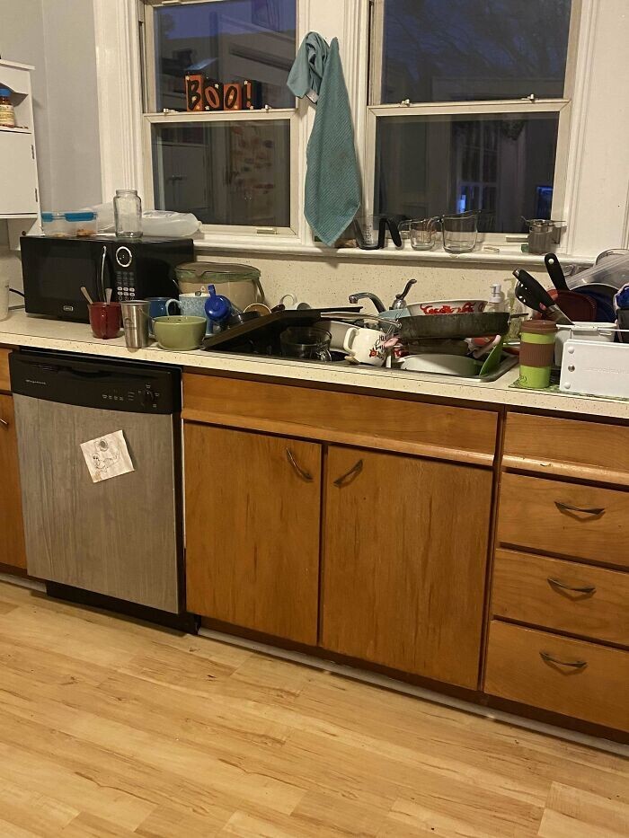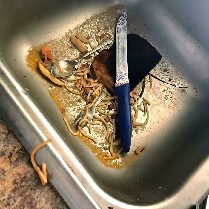 13. «Мой сосед по комнате периодически оставляет беспорядок на кухне. Я начал оформлять эти места как арт-проекты»