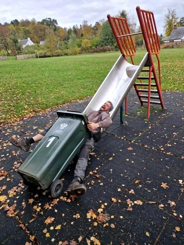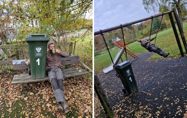 Один парень попросил своего приятеля заняться его мусорным баком, так как его не будет дома. А тот пошёл дальше и устроил с баком целую фотосессию
