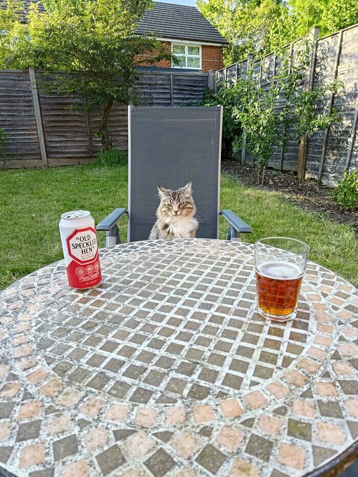 Пользователи поздравили автора фото с появлением приятного собутыльника. Очевидно, что котику никто не предложил выпить