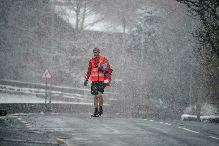 «Есть ли более британское зрелище, чем почтальон в шортах во время снегопада?»
