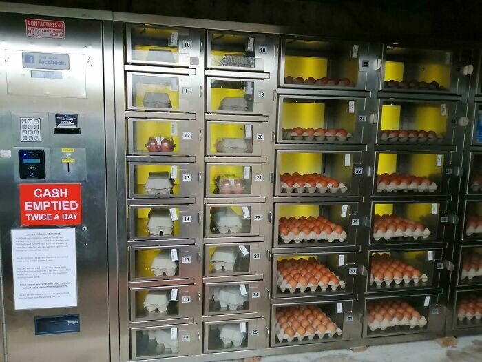 Британские пользователи писали, что обычно у них в деревнях есть фермеры, которые просто выставляют яйца перед домом на стол, после чего покупатели самостоятельно берут яйца и оставляют деньги. Те фермеры, кто столкнулся с воровством куриных яиц, иногда ставят такие автоматы, в которые они также могут помещать другую фермерскую продукцию