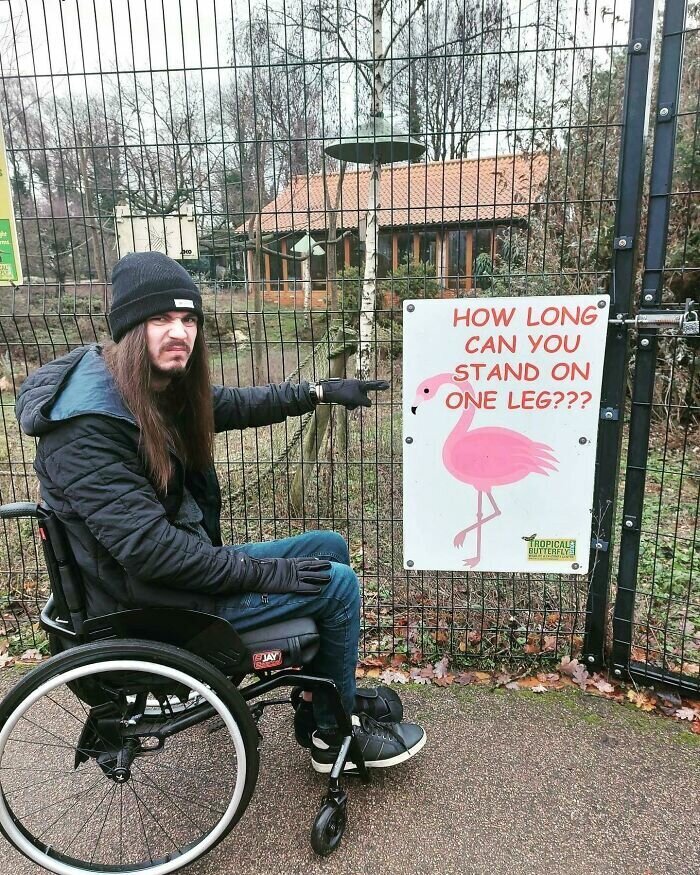 «В прошлом году я в первый раз отправился в заповедник после того, как меня парализовало. Я подумал, что это будет весело, но забыл об этой табличке, поэтому в этом году я решил с ней сфотографироваться», — написал автор фото. На вопрос, сколько он в итоге простоял, автор ответил: «Я решил просто отсидеться»