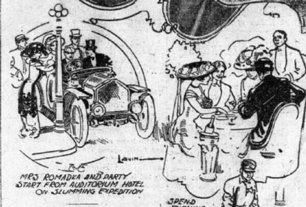 Карикатуры из газеты The Chicago Examiner от 25 июля 1911 г., изображающие преступления Эвелин и её девочек-вампиров.