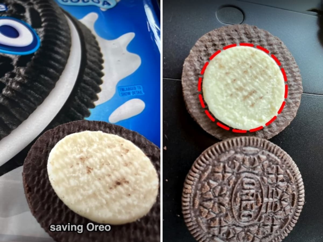 Раньше начинка OREO заполняла всю внутреннюю поверхность печенья. Теперь же внутри осталась раздавленная капелька фирменного крема.