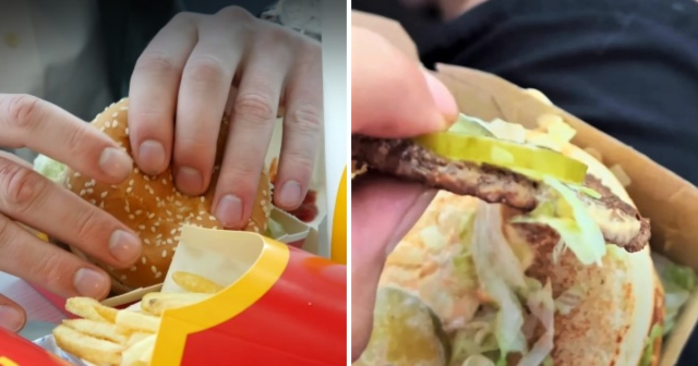 «Две мясных котлеты гриль, специальный соус, сыр, огурцы, салат и лук, всё на булочке с кунжутом, только так и это…» — боль и разочарование от того, что кружок солёного огурца больше самой котлеты. Что ж, экономия должна быть экономной.