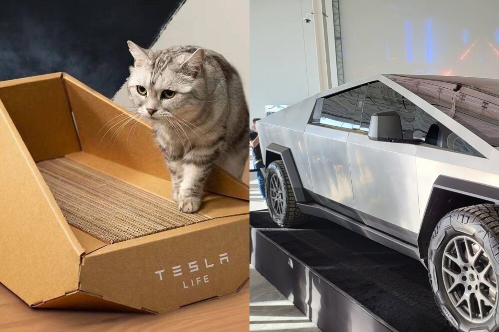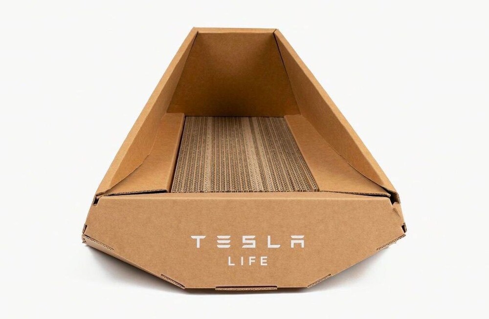 Пока кожаные ждут продаж разрекламированного пикапа, усатые-полосатые вполне могут пользоваться Tesla. Правда, в виде когтеточки, зато в форме Cybertruck!