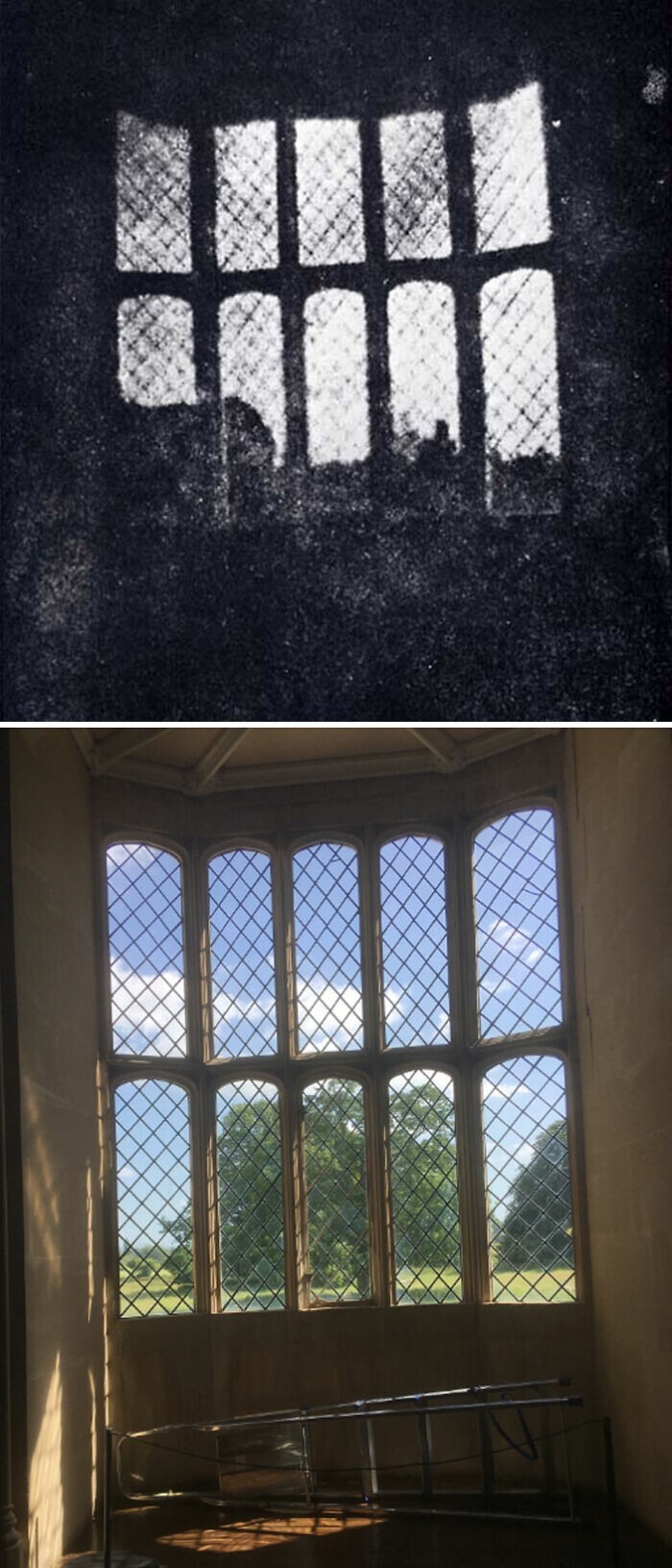 29. Старейший из сохранившихся негативов - окно в аббатстве Лакок, Англия, 1835 и 2022 годы