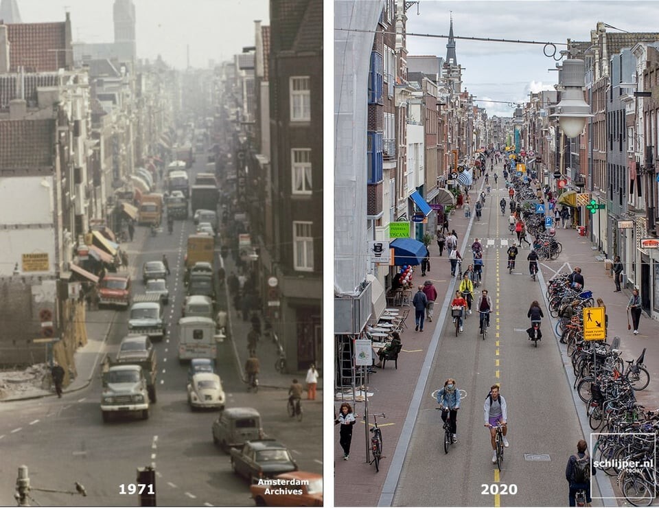 7. Улица Харлеммердейк в Амстердаме, Нидерланды. 1971 и 2020 годы