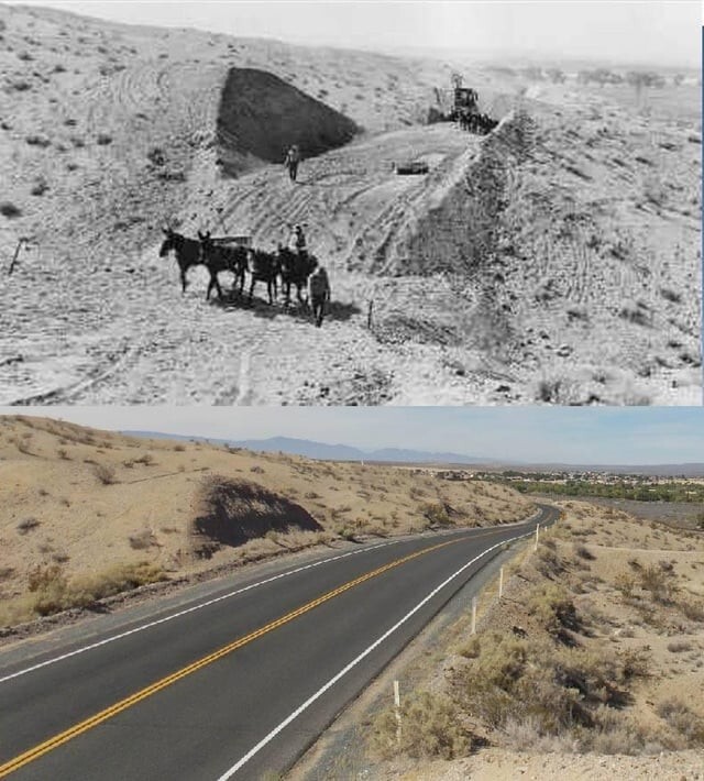 20. Трасса 66 между Барстоу и Оро-Гранде, штат Каролина. 1917 и 2023 годы