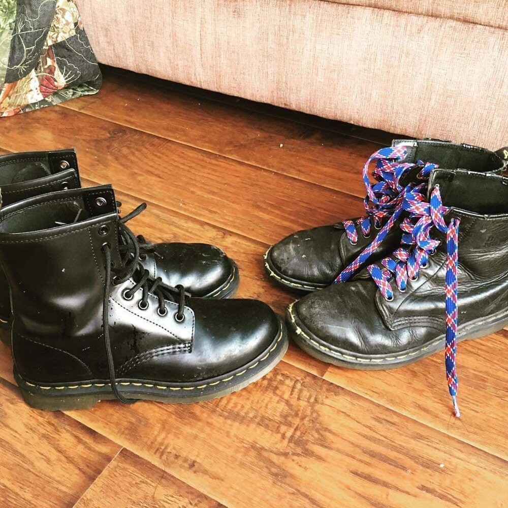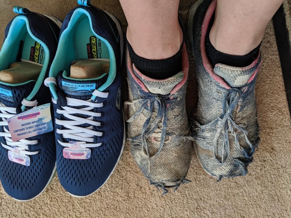2. Я работаю маляром на стройплощадке, и именно так выглядят мои кроссовки после года использования