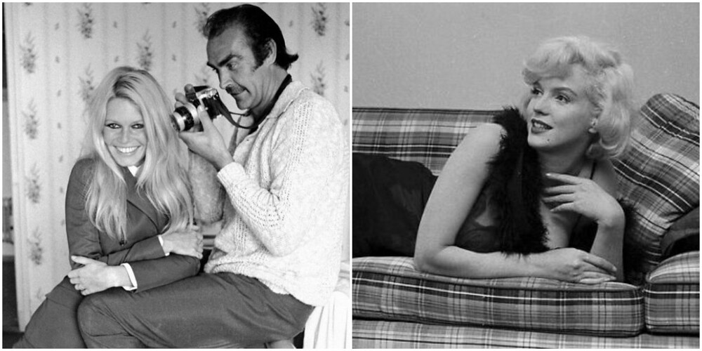 13. Шон Коннери фотографирует Брижит Бардо во время съёмок фильма "Шалако" в Довиле, Франция, 1968 год
