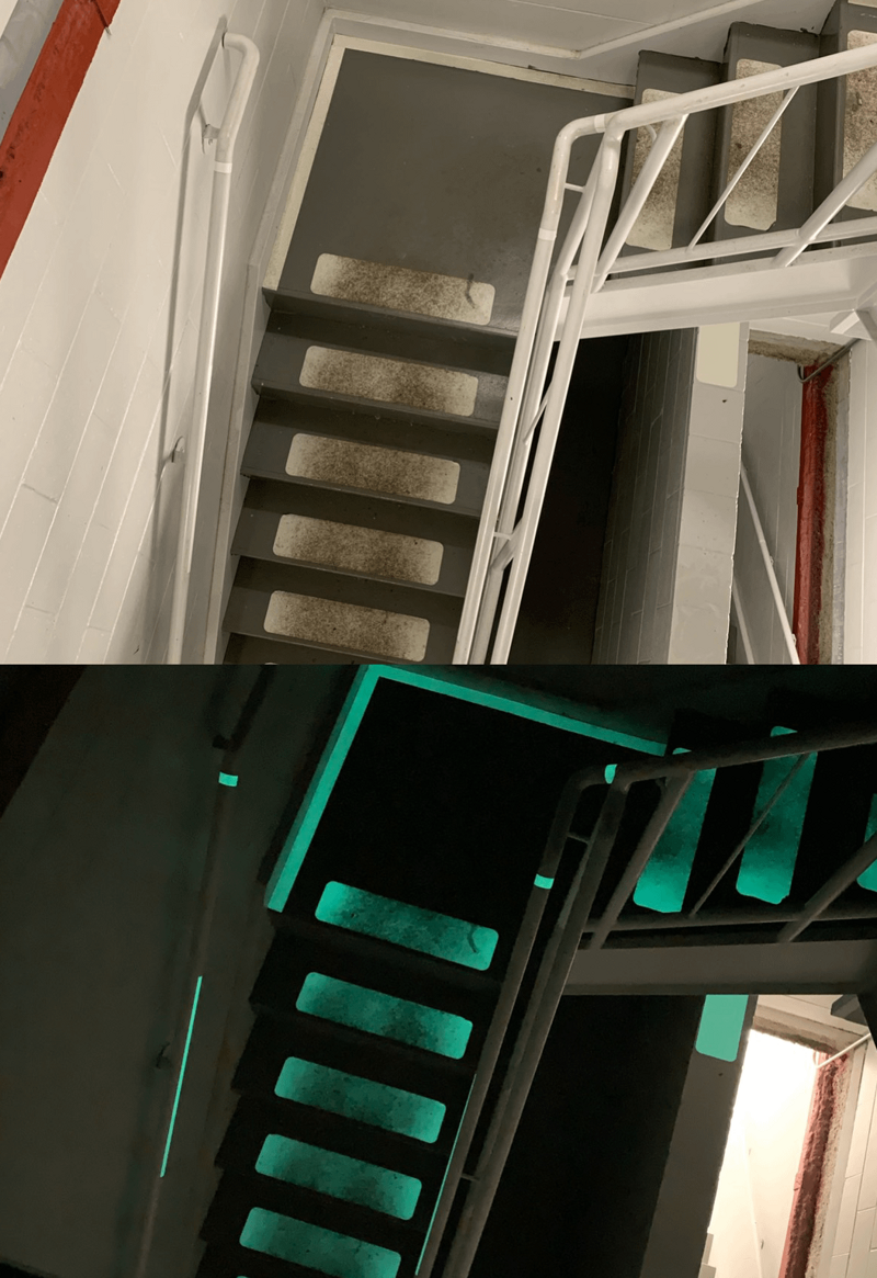13. Аварийная лестница, которая загорается, когда по ней спускаются