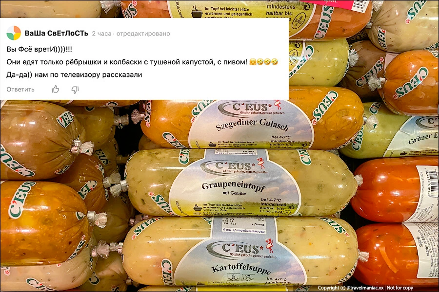 Так что колбаски они едят не так чтобы часто, ведь они в Германии стоят, на удивление, дорого!