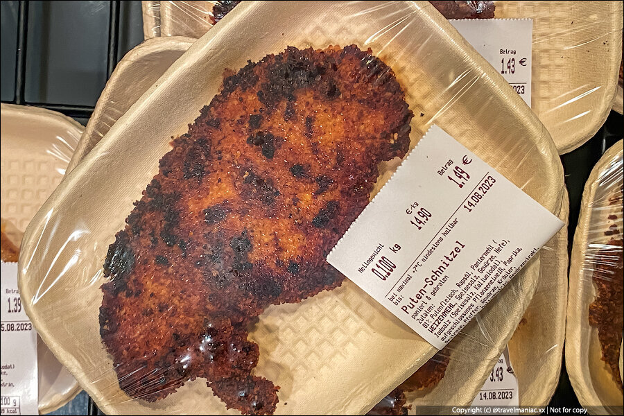 Мало того, что эти шницели выглядят ужасно, как будто они сгорели во фритюрнице, так еще и стоят конских денег. 14,9 евро за 1 килограмм.