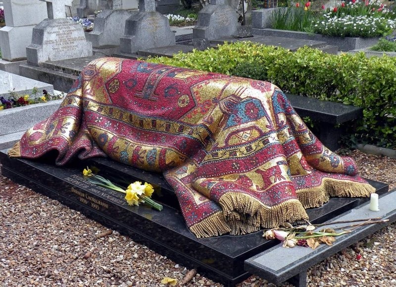Рудольф Нуреев был легендарным артистом балета и партнером английской балерины Марго Фонтейн. Нуреев, считавшийся одним из самых одаренных танцовщиков современности, умер от осложнений на сердце в 1993 году. Он был ценителем красивых ковров и гобеленов и был похоронен в балетных туфлях. Его уникальное надгробие сделано в виде восточного ковра.
