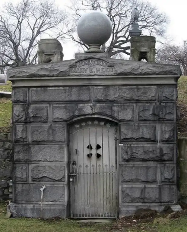 Усыпальница Джонатана Рида и его жены достойна упоминания в нашем списке. Когда умерла жена Джонатана Мэри, он перебрался жить в ее склеп и оставался там до самой своей смерти десять лет спустя. Джонатан поставил для себя пустой гроб, мебель, дровяную печь. За первый год Джонатана навестили около 7000 человек, его часто можно было видеть беседующим с Мэри.