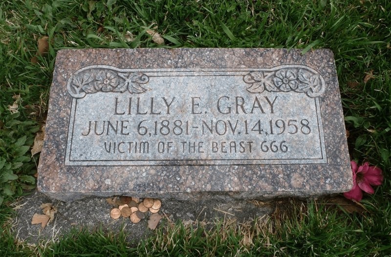 Не каждый день встретишь надгробие, на котором написано, что его владелица стал жертвой Зверя 666. Эта могила находится в канадской провинции Онтарио и принадлежит Лилли Э.Грей. Загадочной фразе так и не нашли объяснение. Говорили, муж Лилли имел проблемы с психикой и заказал надгробие, когда был не в себе.