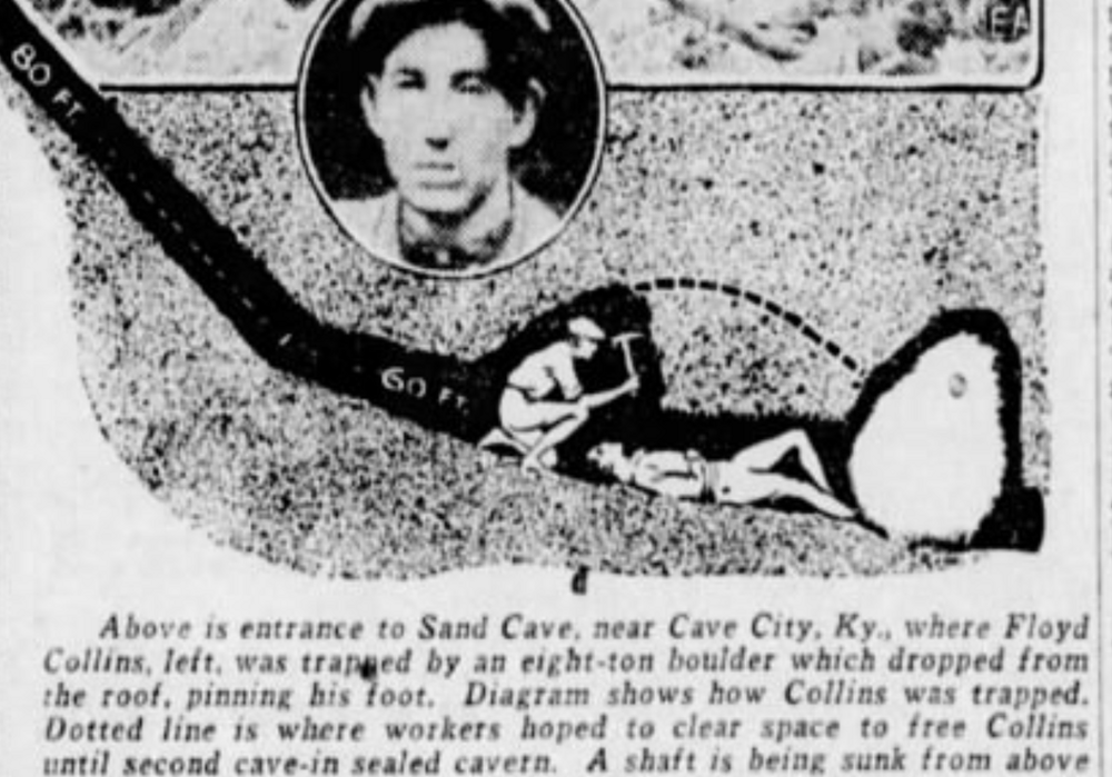 Пока одна попытка спасения сменялась другой, новость о Флойде Коллинзе, застрявшем в Песчаной пещере, распространилась по всей Америке, и туда стали съезжаться толпы любопытных зевак.