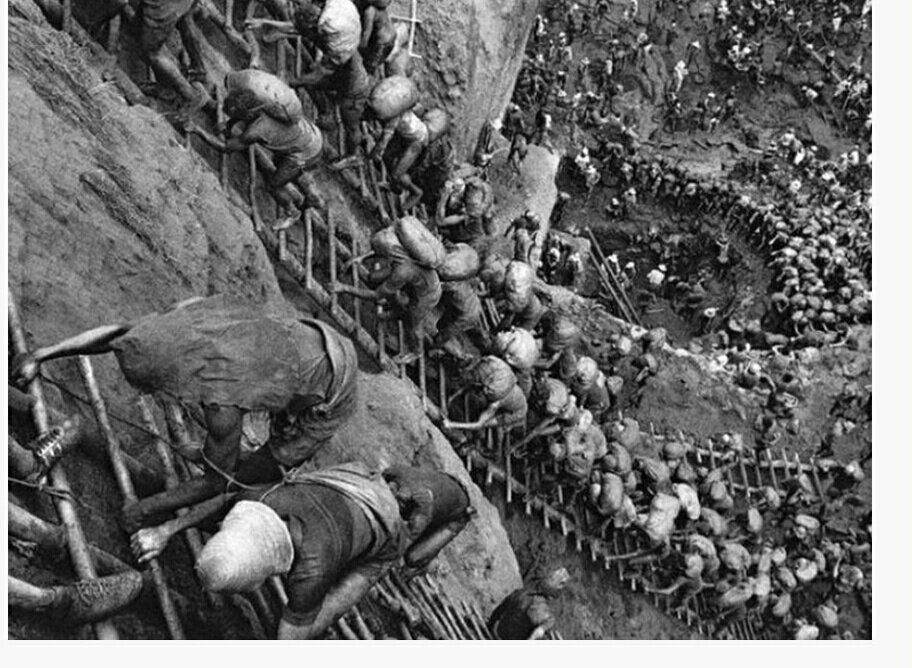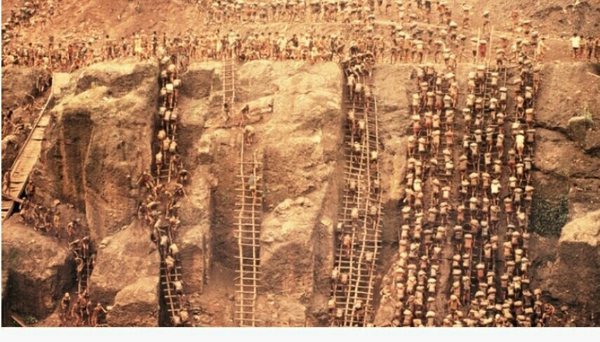 Золотоискатели вырыли яму глубиной аж в 400 метров! И все это - своими собственными руками. Люди буквально таскали землю на себе, перетаскивая тяжелые мешки с землей по веревочным лестницам! Люди просто обвязывали мешки вокруг шеи и тащили их на своем горбу, но... не для себя.
