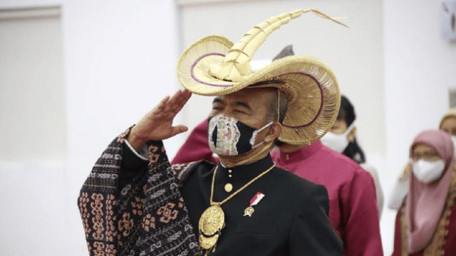 Традиционная для Индонезии шляпа из бамбука, пальмовых листьев и костяного рога. Этой шляпе столько лет, что местные жители уже и сами не помнят, почему у неё должна быть такая странноватая форма.