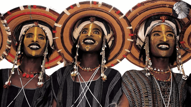 Водабе — племя, живущее на территории Нигерии. Их традиционную шляпу с цветными кожаными вставками носят исключительно мужчины и только вместе с ярким макияжем на лице.