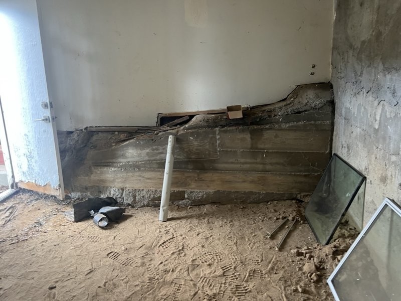27. Сильный ливень привел к затоплению подвального помещения, что провоцирует разрушение фундамента и нестабильность конструкции, а также появление плесени