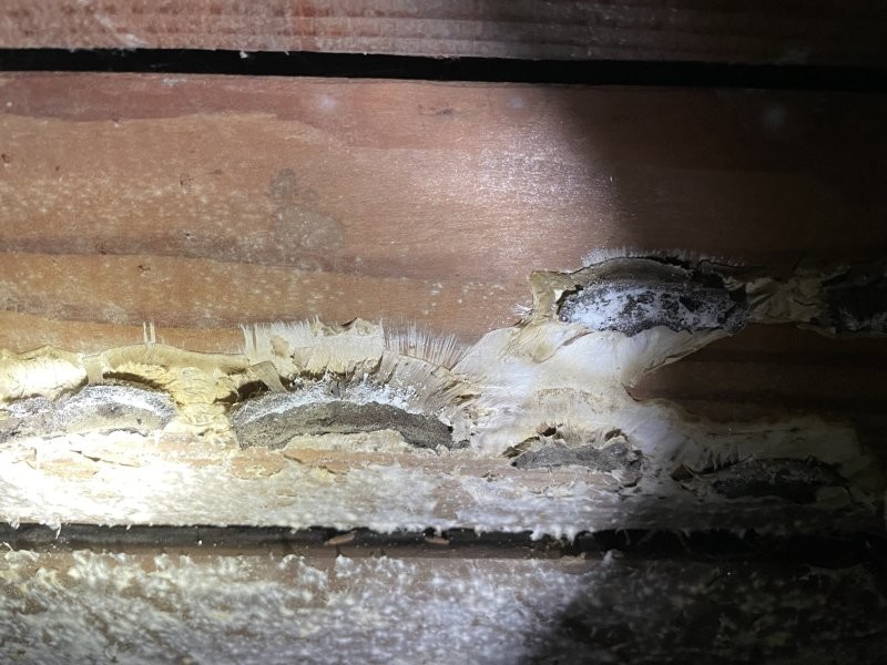Вода попала между балками и штукатуркой, в результате чего большая часть штукатурки отвалилась.