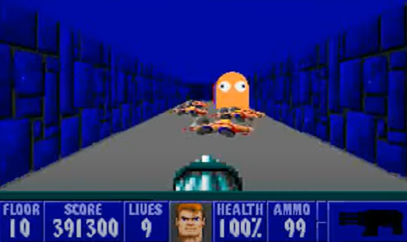 9. Компания "ID software" в 1992 году выпустила культовый 3D-шутер "Wolfenstein 3D". Но причем тут Pac-Man? Да при том, что в третьем эпизоде можно попасть на секретный 10-й уровень. В этом случае главный герой попадает в точно такой же лабиринт, как и в игре Pac-Man, и теперь он должен собрать все сокровища на уровне. Но главная проблема заключается в том, что за ним охотятся те самые призраки, которых нельзя убить.
