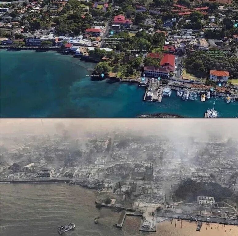 По его словам, Лахайна, бывшая столица королевства Гавайи (существовало с 1820 по 1845 гг) превратилась в крематорий.