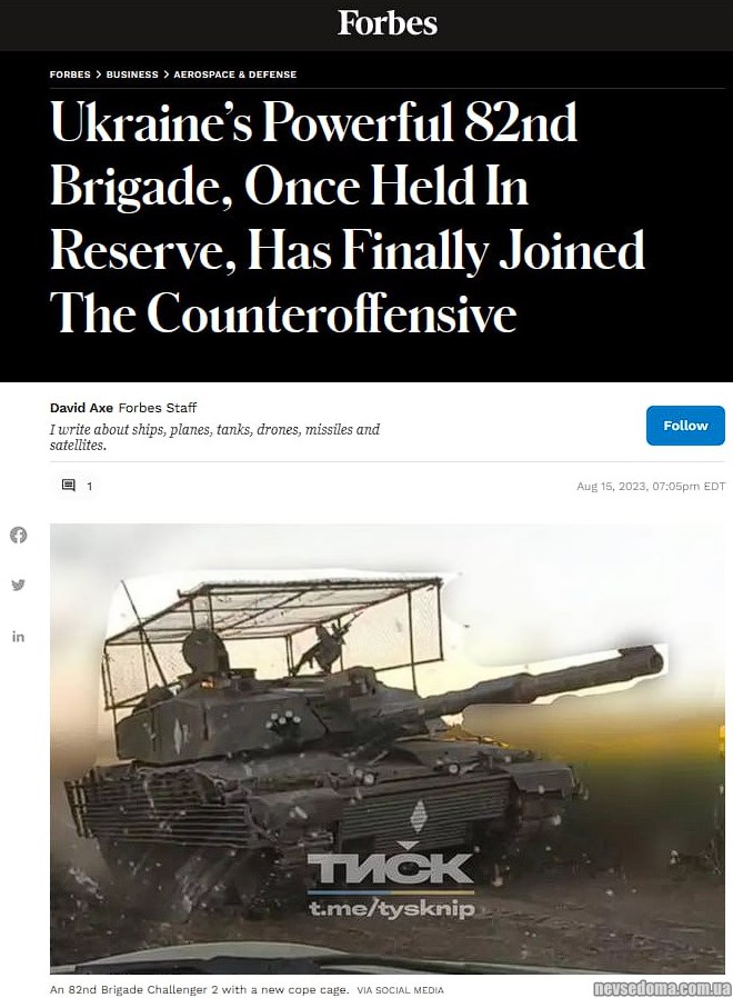 82-я десантно-штурмовая бригада численностью 2000 человек, укомплектованная боевыми машинами Marder и Stryker и танками Challenger 2, за последние несколько дней перешла в боевые действия в районе Роботина в Запорожской области на юге Украины.