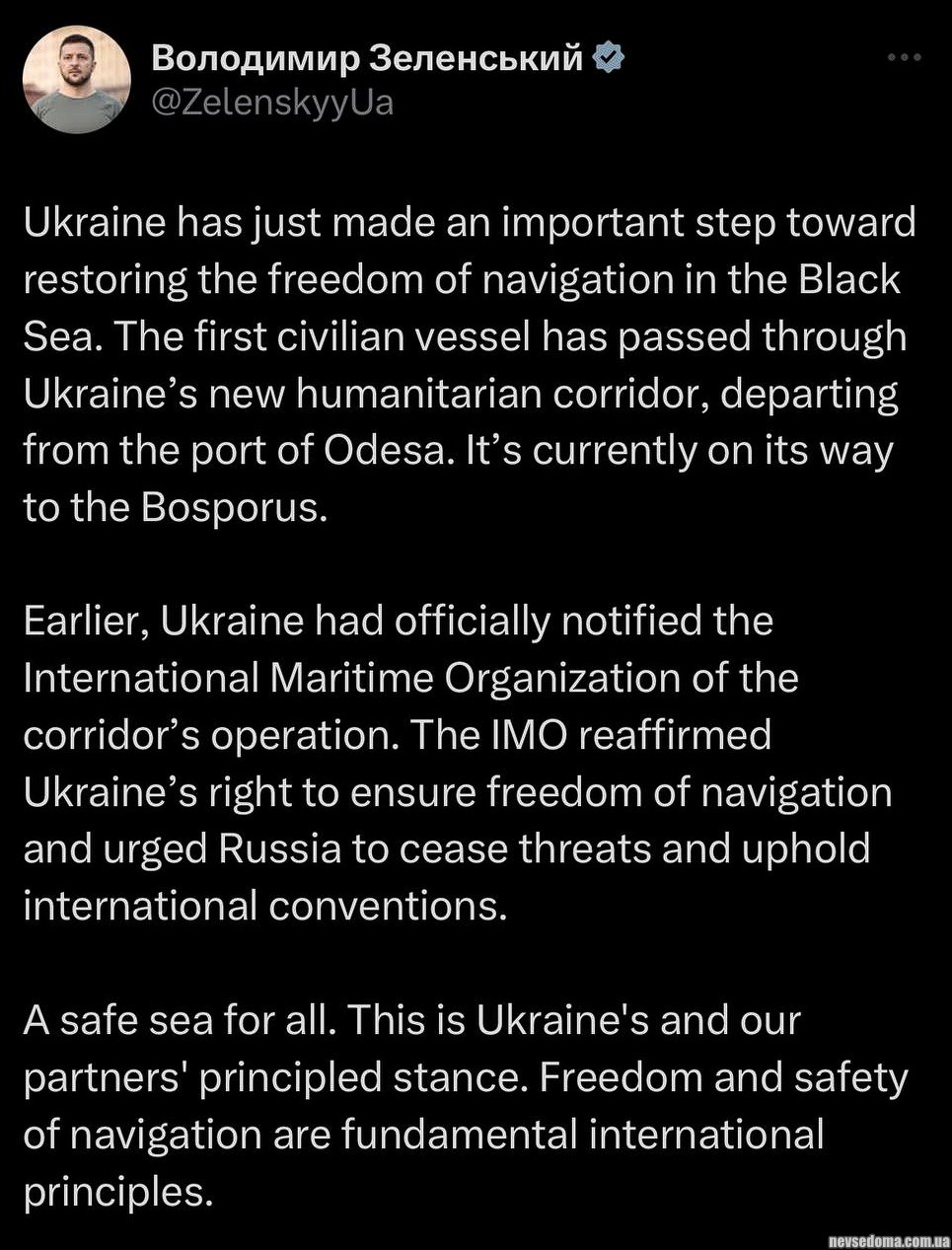Украина только что сделала важный шаг к восстановлению свободы судоходства в Черном море.