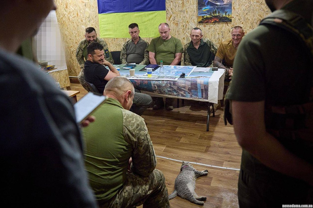 - Ленивый кот принял участие в совещании Зеленского с военными.