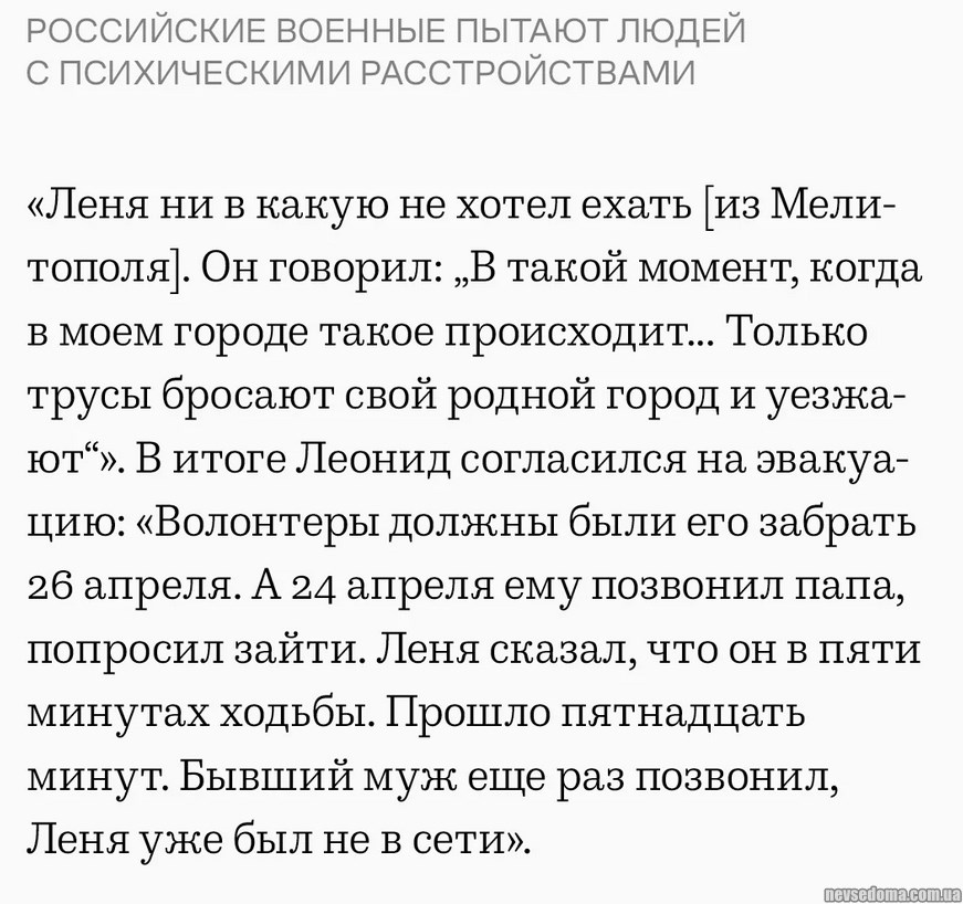 - История жителя Мелитополя с психическим расстройством, которого пытали российские военные