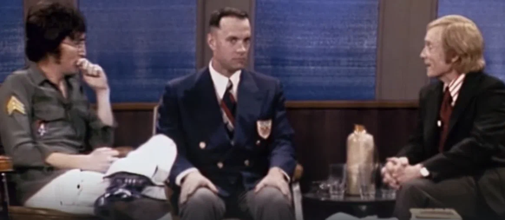 17. Довольно интересным образом была отснята и сцена с Джоном Ленноном. Для воспроизведения данной сцены были взяты кадры из шоу Дика Каветта, где Леннон сидел вместе с Йоко Оно. Как вы уже поняли Йоко Оно заменили Форестом Гампом, а вот на роль Дика Каветта пригласили самого Дика Каветта, немного омолодив его с помощью грима.