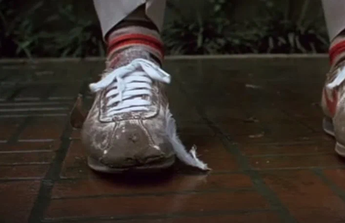 Причем, когда перо падает уже непосредственно на кроссовок Фореста, мы видим компьютерную графику, которая затем сменяется на заранее отснятый кадр с настоящим пером, которое и заменяет компьютерную модель. Вот такая магия кино.