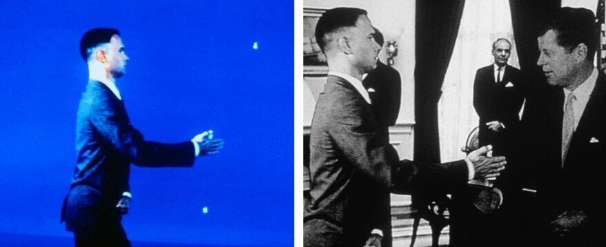 6. Для того, чтобы поместить Фореста в реальные кадры с известными личностями (президенты США, Джон Леннон и др.), Хэнкса снимали отдельно на синем фоне, а затем вставляли в реальные исторические кадры.