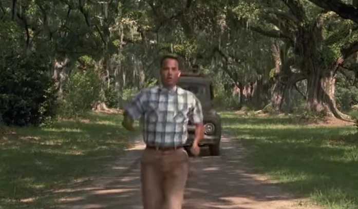 Интересно другое. Когда Том Хэнкс свернул, он тут же ушел за пределы камеры, а Форест, бегущий вдали, это уже дублер Хэнкса.