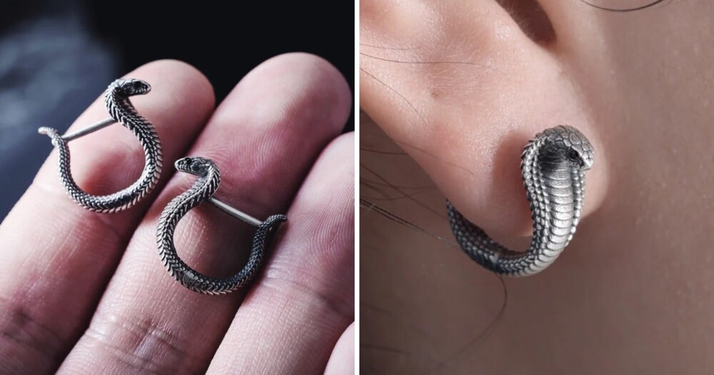 Я создал серьги в виде кобры длиной всего 1,58 сантиметра и попытался вырезать чешуйки по всему её телу
