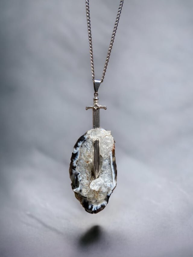 Для создания кулона были использованы полимерная глина и драгоценные камни.